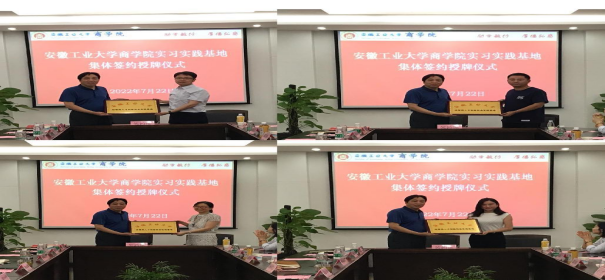 在秀山校区汇文楼C402会议室举行实习实践基地集体签约授牌仪式。方正证券股份有限公司马鞍山佳山路证券营业部总经理孟祥勇、东方财富证券股份有限公司马鞍山湖东北路证券营业部总经理张泽丰、马鞍山智信企业管理有限公司总经理刘瑛、马鞍山市华夏基石人力资源管理有限公司总经理余道霞和各公司有关负责人,博彩