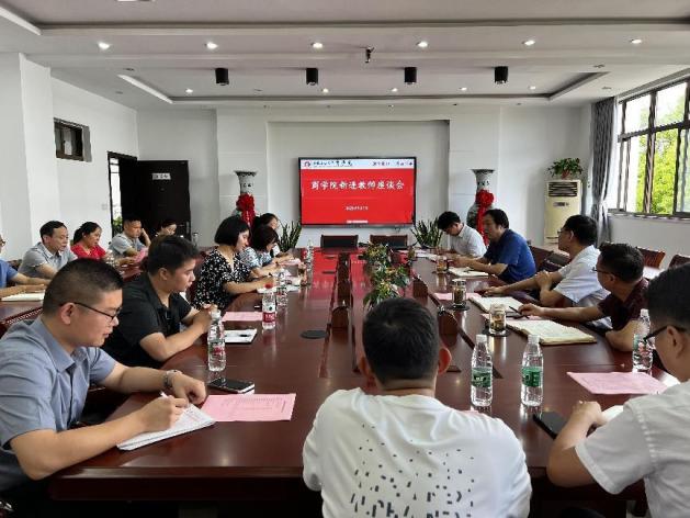 在汇文楼B304召开新进教师座谈会。学院领导班子成员、相关系负责人、办公室人员、近两年新进教师参加了本次会议。会议由院党委副书记、副院长张虎主持。