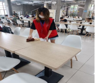 于5月12日在八食堂进行食堂卫生保洁。进入食堂,学生们首先与食堂经理进行沟通,得到许可与支持后,开始整理桌椅、收拾桌面、清理垃圾,受到了食堂工作人员的赞赏并且深刻体验到劳动的美。