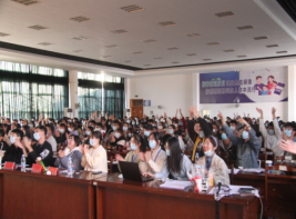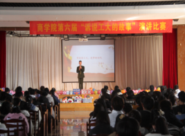 在秀山校区老大学生活动中心举办第六届“诉说工大的故事”演讲比赛决赛。学院分团委学生副书记田鹏、学生会主席唐丽吟和团学各部门负责人以及往届演讲比赛优秀选手担任赛事评委,各班级学生代表到场观看比赛。