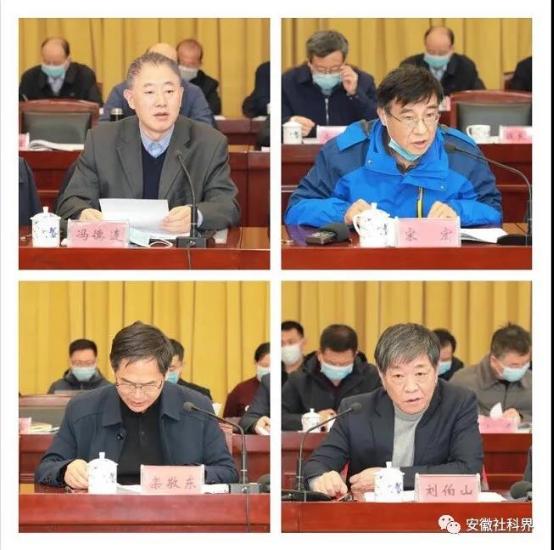 党委书记洪功翔教授,安徽财经大学副校长冯德连教授,安徽大学创新发展研究院副院长宋宏研究员,安徽农业大学农村发展研究院院长栾敬东教授,省政府参事、安徽大学徽学研究中心刘伯山研究员等先后发言,省政府参事、省社科院城乡所所长孔令刚研究员,安徽财经大学工商管理学院院长胡登峰教授提交了书面发言。与会专家学者围绕在高质量发展中展现安徽新作为、关键核心技术突破驱动安徽高质量发展、建设长三角科创共同体、打造安徽产业竞争优势、皖北“四化同步”与共同富裕、推进对外开放、长三角区域传统文化共识等角度积极建言献策。
