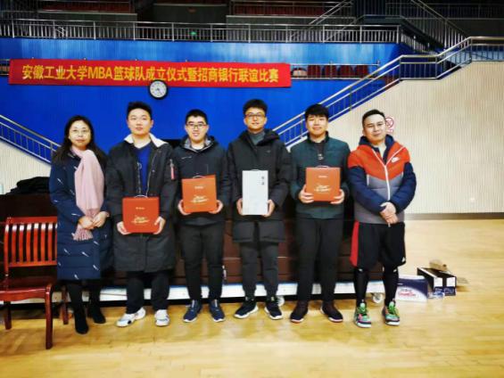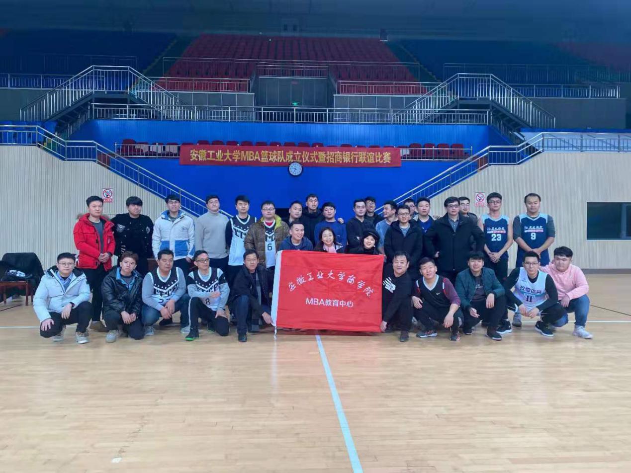 MBA中心邀请,马鞍山招商银行信用卡部总经理朱蔚群率领招行篮球代表队前来我校与MBA篮球队进行联谊,在安工大秀山校区新体育馆进行了一场精彩的篮球比赛。