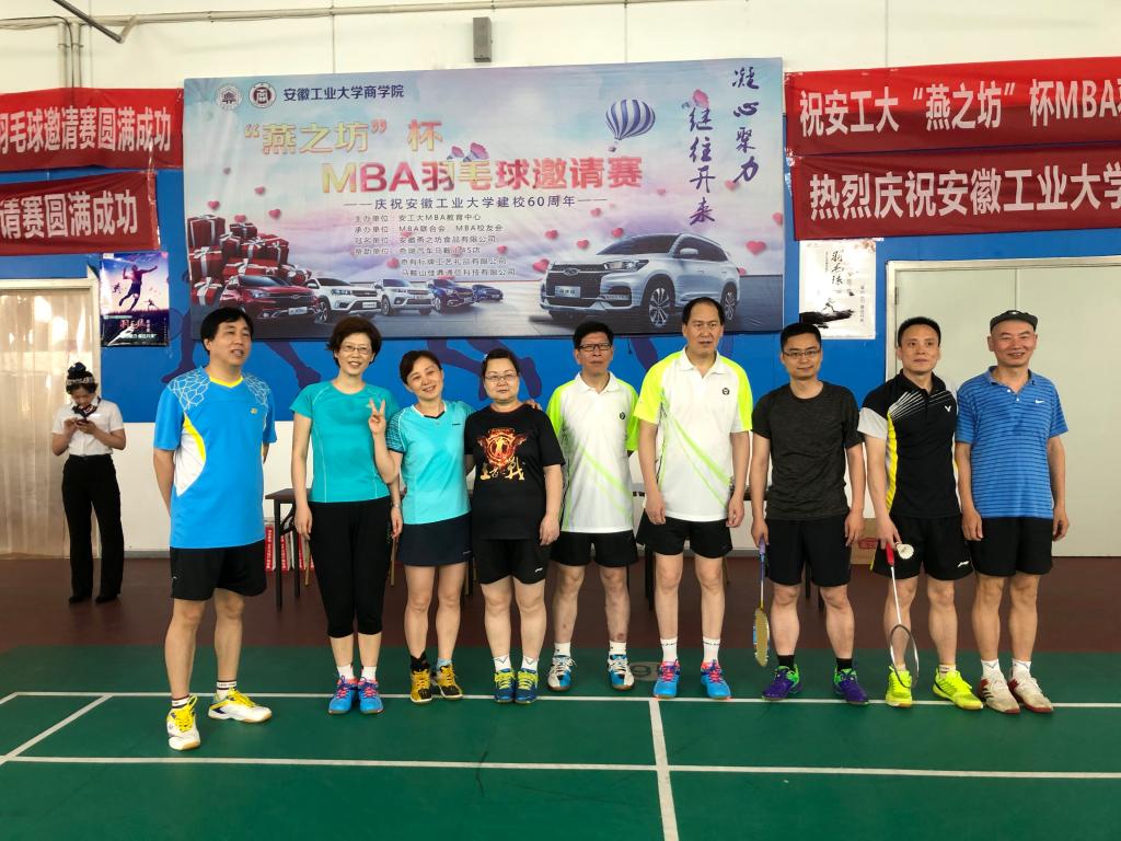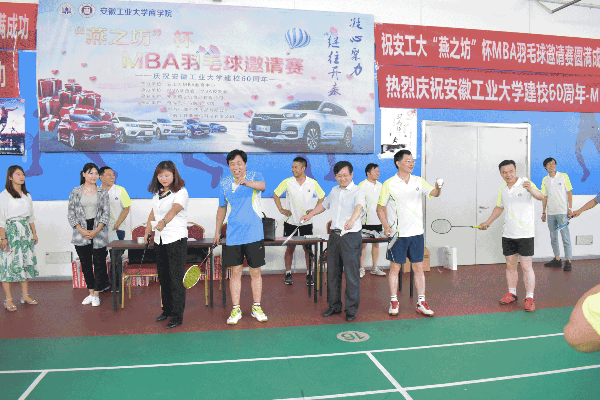 60周年校庆,传承文化底蕴,弘扬优良传统,展示办学成就,扩大社会影响,MBA教育中心以羽毛球邀请赛为载体,凝聚校友力量,丰富师生业余生活,促进MBA学员和学员单位之间广泛交流,现由MBA教育中心主办,MBA校友会&MBA联合会共同承办“凝心聚力继往开来”“燕之坊”杯MBA羽毛球邀请赛,比赛于2018年6月24日在奥体爱玛会羽毛球馆(安工大东校区)举行,应邀参加本次比赛的十支队伍分别是安徽MBA代表队,安工大教工代表队,博彩