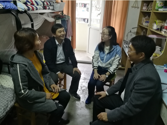 在学生宿舍里,黄国才亲切地询问了困难同学家庭情况,在校学习和生活情况,高度赞扬了她们自强自立、乐观向上的精神和坚强的意志品质,勉励她们勇于面对生活困难,常怀感恩之心,继续努力前行。张虎表示学院党委会持续关注她们的情况,帮助她们解决实际困难,也希望她们继续努力,以优异的成绩回报家人、回报社会,做一位正能量的传播者,在目前学业乃至以后的事业上争取有更大的突破。