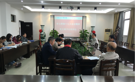 的专业属性决定了我们要早学、先学、带头认真学习十九大精神。他强调,十九大会议为我们提供了非常丰富的数据信息,支部书记要多思考怎样将内容引进课堂,将十九大精神与学院的科研、智库、教学等方方面面融汇出新的成果,让学习贯彻十九大精神落地生根。院党委委员、会计系支部书记王锴老师等认为十九大报告体现出了我们党在战略上的一种自信,新时代中国特色社会主义建设战略思想的提出让人印象深刻。