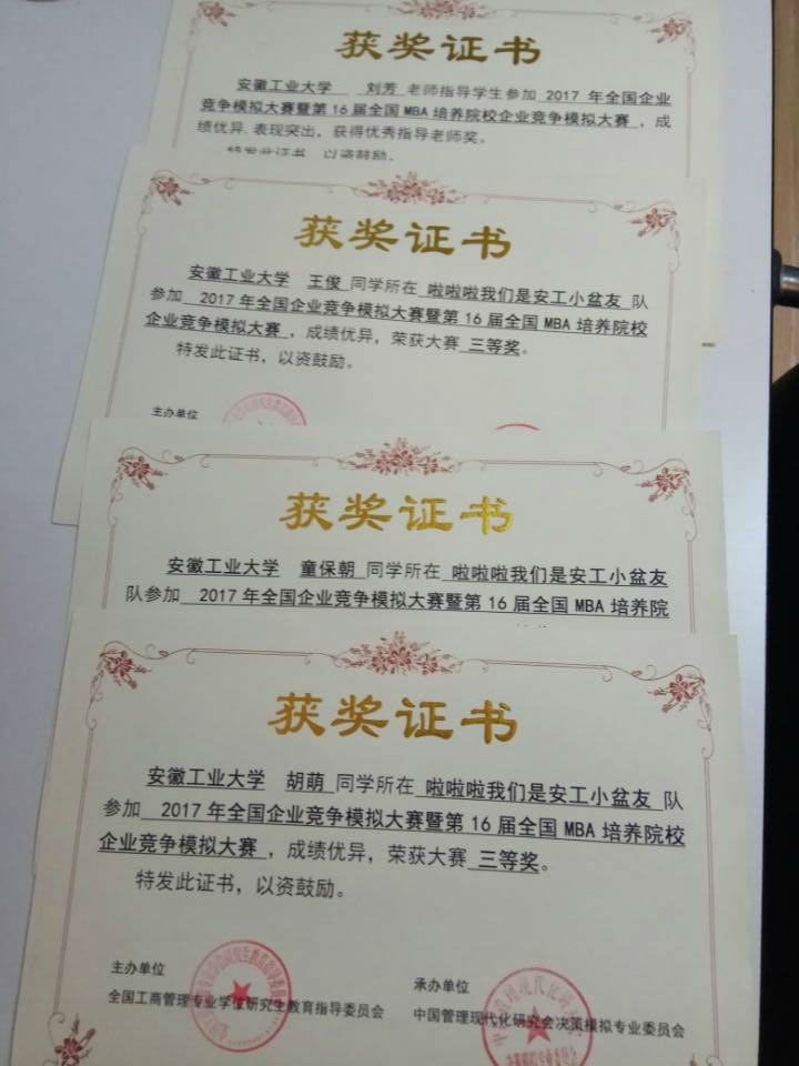 刘芳教授和16级MBA学员胡萌、王俊、童保朝组成的参赛队伍在校赛中脱颖而出,代表我校参加了由全国28个省市区的232所MBA培养院校2867支队伍共同参赛的全国比赛。经过初赛、复赛、半决赛的各个突围,我校选手获得全国总决赛三等奖。