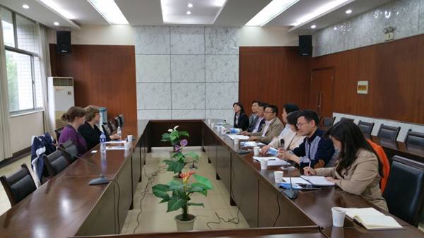 4月21日,美国朗沃德大学(LONGWOOD UNVERSITY)国际交流部主任Patricia、教学主任EileenJones、助理Emma到校交流两校合作事宜。