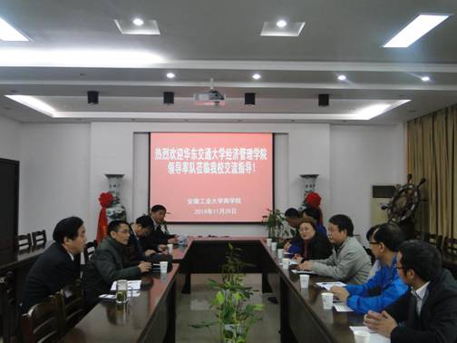 林钟高代表学校对张诚一行的到来表示欢迎,介绍了我校的发展历程和相关学科的发展状况,他认为两校的发展有许多相似之处,希望今后能一步加强与合作。洪功翔、吴玉国、周传华先后详细介绍了我校相关学科的学科建设、师资队伍、人才培养等方面的具体情况。张诚介绍了华东交通大学经济管理学院的一些情况,并对我校相关学科的发展状况给予赞赏,表示通过交流受益匪浅。
