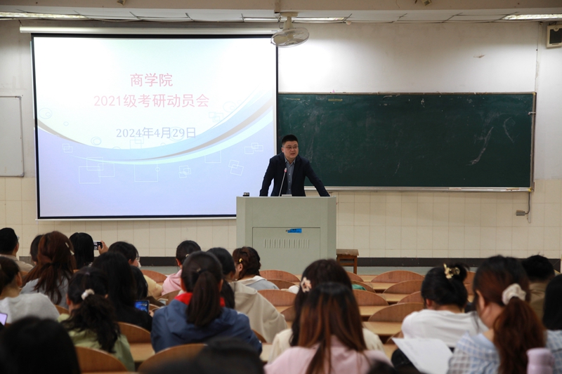 于秀山校区阶教101室召开2025届毕业生考研动员大会,21级辅导员和全体21级本科生参加此次动员会。动员会由学院党委副书记、纪委书记、副院长蒋磊主讲。