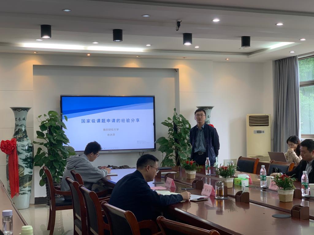 举办了主题为“国家基金项目申报辅导与经验交流”的经管学术沙龙(第4期)活动。活动邀请了南京财经大学国际经贸学院院长余泳泽、副院长陈启斐、杨向阳教授、李宏亮研究员等专家到会指导交流。学院副院长周世军、李伟军、中青年博士和骨干教师参加了本次交流活动。会议由周世军主持。