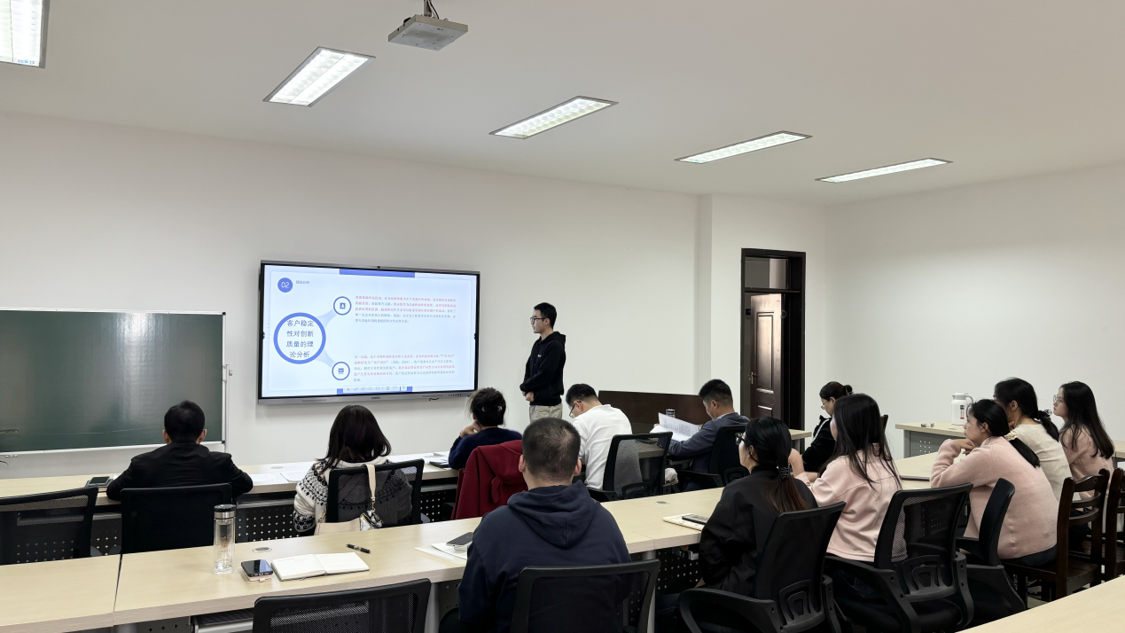 成功举办第十五届研究生科技学术报告会。报告会分为工商管理学硕士和应用经济学硕士两组进行,工商管理学硕士组由徐虹教授担任组长,武优勐、吕彬、章文佩和陈刚四位老师出席报告会并担任评委,张星联担任秘书;应用经济学硕士组由李伟军教授担任组长,江小国、崔立志、刘丽萍和张晴四位老师出席报告会并担任评委,郝乐担任秘书。