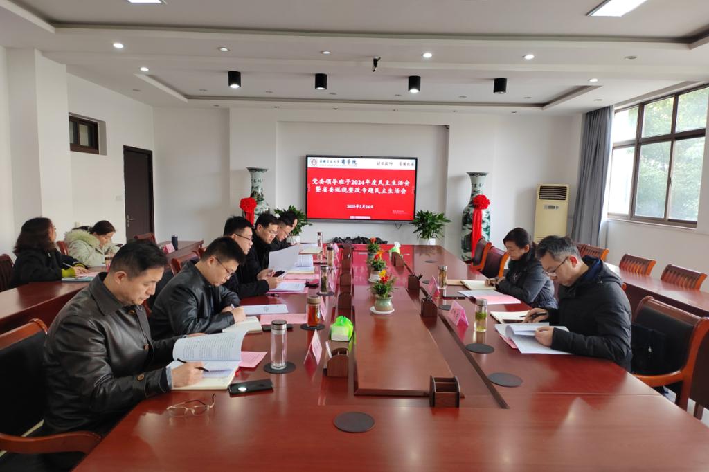 2月26日下午,院党委领导班子召开2024年度民主生活会暨省委巡视整改专题民主生活会。校党委第八督导组成员洪芳、汪旭东到会指导。院党委书记杜飞主持会议并作总结讲话,院党委领导班子成员出席会议,部分党支部书记代表、党员代表列席会议。