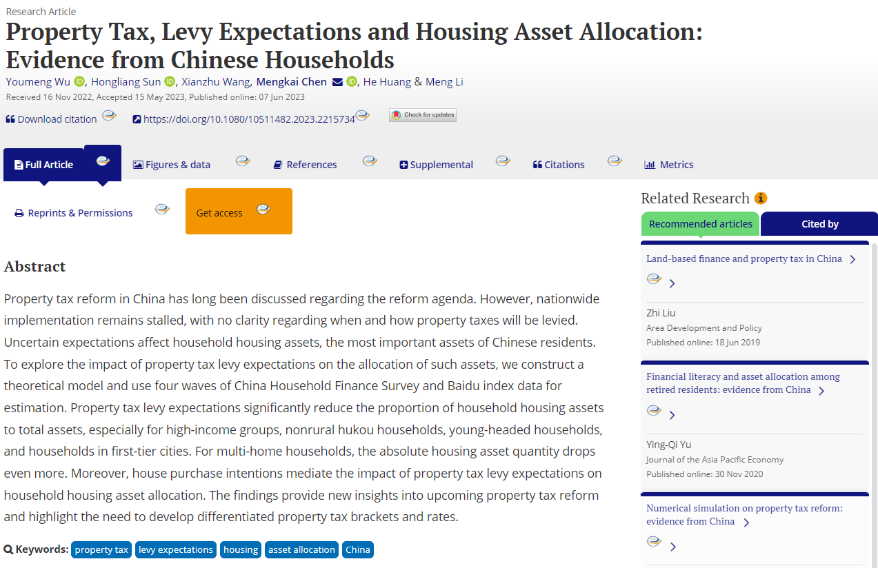 房地产经济与金融研究团队在国际知名期刊《Housing Policy Debate》上发表房产税征收预期的家庭资产配置效应最新研究成果。《Housing Policy Debate》是住房研究领域国际知名老牌SSCI期刊,创办于1990年,2022年影响因子2.420。博彩