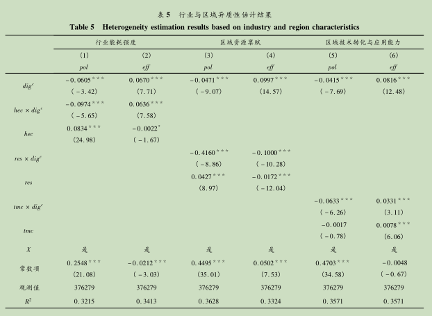 研究基于污染排放与绿色增长效率角度考察投入数字化红利,为实现环境改善与经济高效增长的双赢目标,谋求绿色转型的新路径提供决策支持。研究过程基于WIOD投入产出数据库、中国工业企业数据库与中国工业企业污染排放与治理微观数据库,实证检验了投入数字化对企业减排增效的影响特征及作用机制。研究发现:(1)投入数字化具有显著的“减排增效”效应,并通过技术创新与生产柔性化渠道发挥作用。(2)“减排增效”效应呈现高耗能行业大于低耗能行业的行业特征;“减排”效应对资源型城市作用更大,“增效”效应对非资源型城市作用更大。(3)企业高技能劳动要素、区域技术应用转化能力对投入数字化的“减排增效”效应具有正向调节作用。