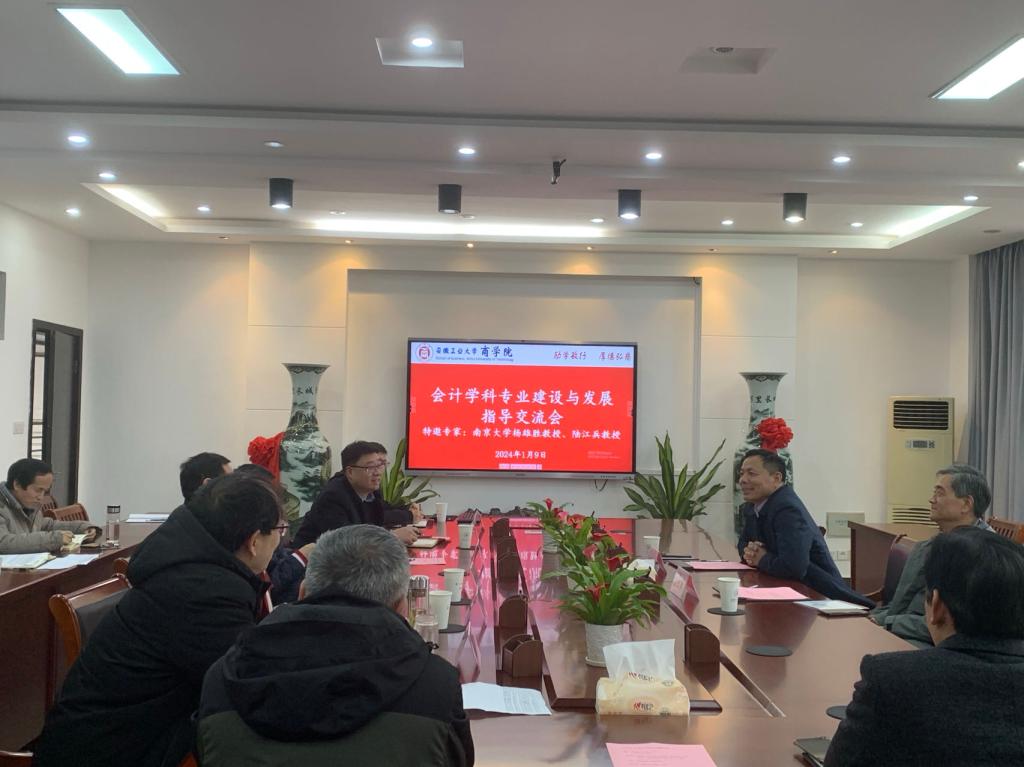 在汇文楼B304召开会计学科建设与发展指导交流会。会议特邀首批全国会计名家、南京大学会计系杨雄胜教授和南京大学科技产业党工委书记陆江兵教授来校指导,学院党委书记杜飞及会计系全体教师参会。会议由院长章铁生主持。