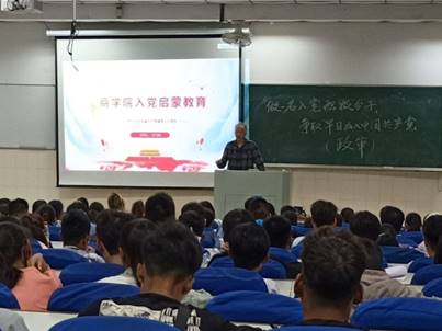 在秀山校区阶教102教室开展入党启蒙教育,校关工委教师王光明应邀为新生开启入党启蒙教育第一讲。