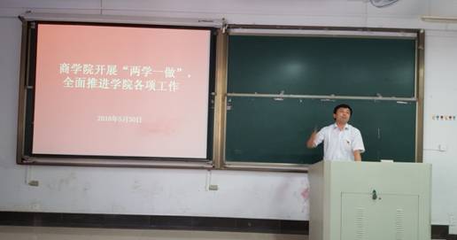 在秀山校区汇文楼D305教室召开全体教工大会。学院党委书记黄国才同志给在座的全体教工作了一场“扎实开展两学一做,全面推进学院各项工作”的专题报告。