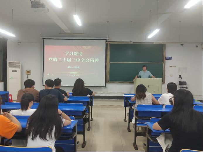 会计硕士党支部召开支部大会,由支部书记陈昌龙宣讲党的二十届三中全会精神,支部23届、24届全体学生党员参加会议。