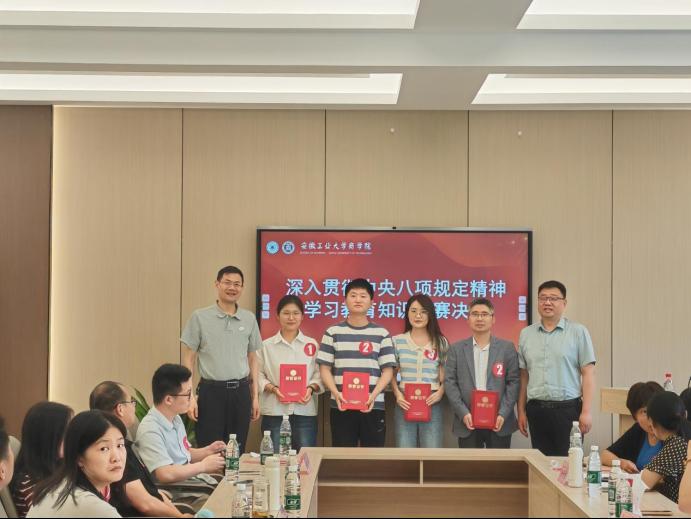 竞赛分为必答题、抢答题、风险题三个环节,内容涵盖中央八项规定精神的具体要求、典型案例分析及作风建设实践路径等。赛场上,各参赛队伍精神饱满、反应迅速,必答题环节展现扎实的知识储备,抢答题环节上演“手速与脑力”的双重较量,风险题环节则考验团队共同协作与担当。经过激烈角逐,工商系党支部代表队凭借扎实的理论功底和默契的团队协作荣获一等奖,办公室党支部、会计系党支部代表队获得二等奖,营销系党支部、经济系党支部、金统系党支部、国贸系党支部代表队获得三等奖。