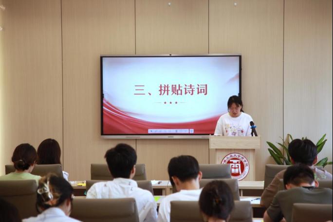 为深入贯彻中央八项规定精神学习教育,加强作风建设,6月13日上午,学院办公室党支部、学生第一、第八、第十、第十一党支部联合举办了“深入贯彻中央八项规定精神学习教育拼贴诗会”主题党日活动,共有来自5个师生支部的党员、积极分子等40余人参加。