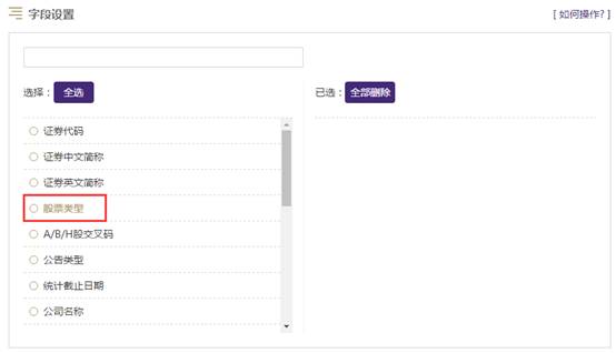 l 可选代码区域:点击“全选”,默认将可选代码区域的代码全部选中移至已选代码区域;点击可选区域的某个代码,将自动移至已选代码区域。