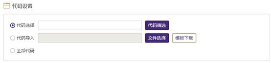 您可以通过以下三种方式进行代码选择:全部代码、代码选择、代码导入(对于某些和代码无关的分类,比如宏观经济库,页面中将自动过滤代码设置模块):