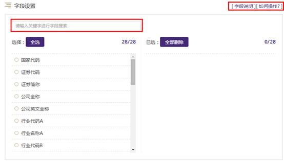 如果当前数据表包含字段太多,您可以通过在输入框内输入您想查找的字段关键字进行实时搜索。如需了解更多字段设置的操作说明,可点击【如何操作】进行查看。如需了解当前数据表的字段说明,可点击【字段说明】进行查看。