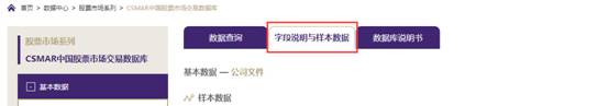 如果您想查看某个数据表的样本数据或字段说明,请点击【字段说明和样本数据】。或者,您可以通过点击【数据库说明书】查看当前数据库的简介和下载数据库说明书。当客户购买此数据库时,才能下载数据库说明书。
