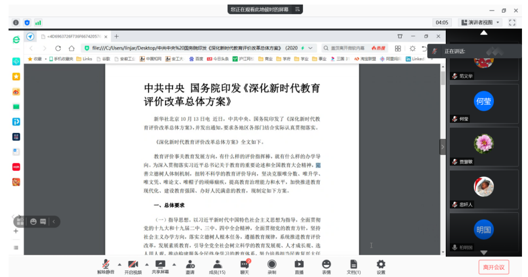 会计系、工商管理系、市场营销系、经济系、金融与统计系以及国际贸易系等六个系通过线上或线下集中的方式,组织学习了《深化新时代教育评价改革总体方案》。