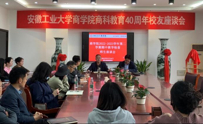 在汇文楼B304会议室召开了2022-2023学年第二学期期中教学检查师生座谈会。院党委副书记、副院长张虎、副院长周世军以及各系主任、辅导员代表、教学干事和各年级学生代表参加了本次座谈会。座谈会由张虎主持。