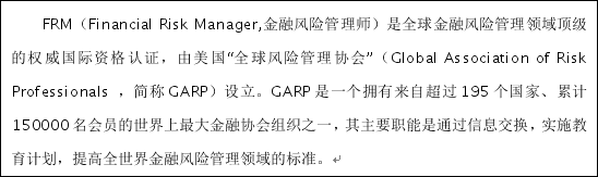 FRM的价值远远高于证书本身,能证明持证人拥有做出客观的风险及相应管理决策必备的、完整的知识结构和能力,在就业选择上会拥有更多机会。