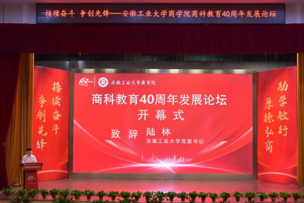 党委书记洪功翔主持开幕式。校党委书记陆林在致辞中代表学校向商科教育40周年发展论坛的成功举办表示热烈祝贺,向博彩