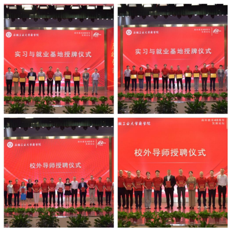 主题发言后举行了实习与就业基地授牌和校外导师授聘仪式。18家校友企业挂牌成为博彩
