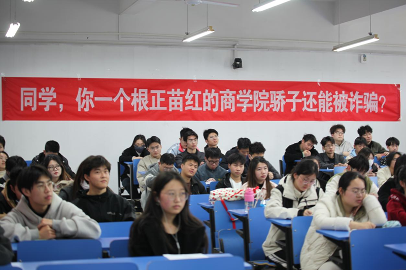 此次活动不仅强化了学生的防电诈理论知识,同时增强了学生的自我防范和安全保护意识,进一步呼吁同学们遵纪守法,不可有“天上掉馅饼”的心理,提高自身安全防范意识,做好自己“钱袋子”的守护人,展现良好的商院学子精神风貌。(撰稿:吴可凡 张舒 审核:王天蓝 蒋磊)