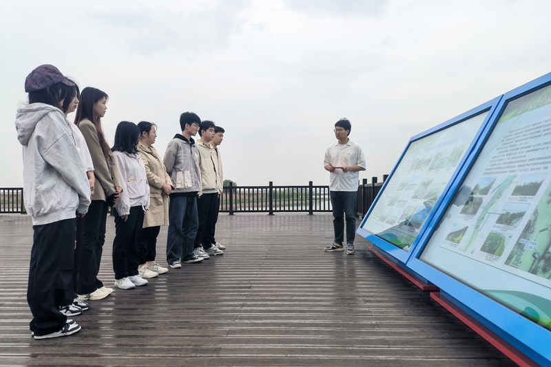 学生代表们来到了长江边的观景平台,老师向大家讲述了薛家洼翻天覆地的变化,同学们通过映入眼帘鸟飞豚跃的美丽景色,切身实地地感受到薛家洼的今昔对比,了解到薛家洼生态园长江岸线综合整治、生态环境保护修复等方面取得的成效。