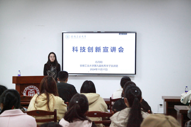 团委习研会在秀山校区汇文楼B114举办第九届“逐梦强国路 青春再出发”优秀学子科技创新宣讲活动。本次活动由第九届优秀学子宣讲团成员石丹阳担任宣讲人。